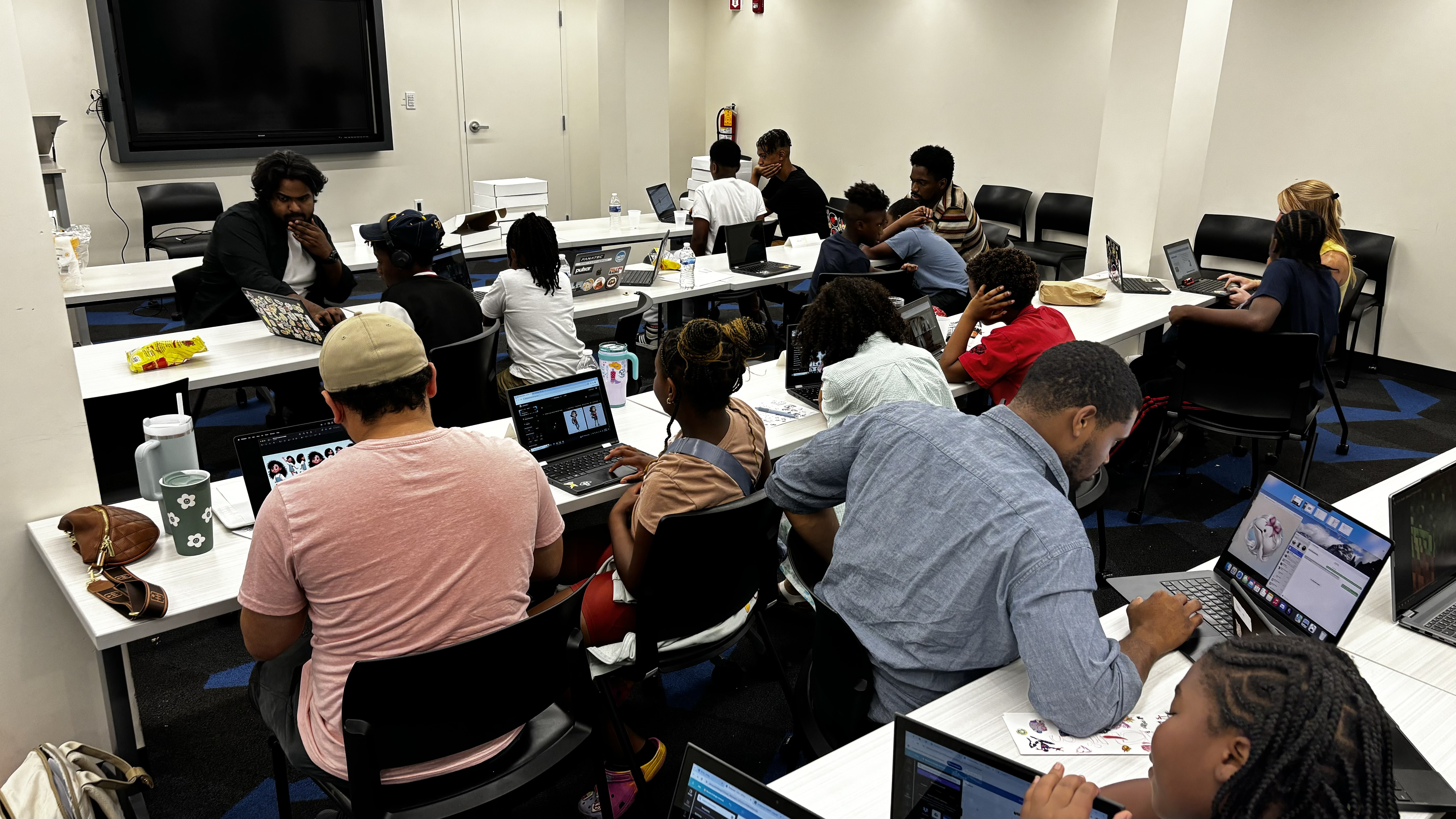 Hands-on workshops introducing students to generative AI, digital storytelling, and ethical design.